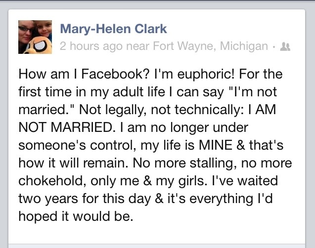 Wordless Wednesday: Aftermath January 16, 2013 by maryhelenc, posted in Douchers, My New Life As Me Okay, so the picture has words…& I’m writing words. But it’s a pretty big deal. After two years of court battles, custody battles & insanity, I am free…& it’s just as amazing as I’d hoped it would be. Share this: Click to share on X (Opens in new window) X Click to share on Facebook (Opens in new window) Facebook Click to share on Tumblr (Opens in new window) Tumblr Click to share on Pinterest (Opens in new window) Pinterest Like Loading... Related