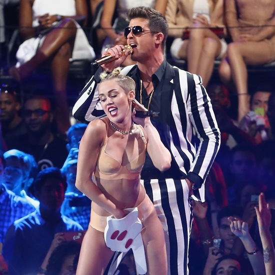 Much like the Madonna/Britney kiss or Rose McGowan’s assless dress, you all talked about Miley & Thicke, who performed a mash up of their songs & recreated their videos. Cyrus’s new single Wrecking Ball is number one on iTunes & Thicke’s single Blurred Lines is number 2 (It should be noted that Blurred Lines was the number one single of summer, with Cyrus’s We Can’t Stop @ number two). Everyone is talking about Robin Thicke & Miley Cyrus on a night that was supposed to be about duelling performances between Lady Gaga & Katy Perry & the N*Sync reunion. Cyrus & Thicke knew they needed to get people talking, as bad press is good press & they did. They played you like fiddles & you all fell for it.
