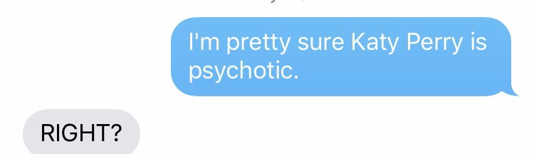 This isn’t the only account of Perry’s bullying of other women. Earlier this year, she mocked Britney Spears’s mental breakdown a decade before. She regularly makes comments about Spears’s mental health. This is not how women should behave. You don’t need to belittle other women to elevate yourself. There is room on all of our phones for Britney Spears, Taylor Swift, and Katy Perry. Heck, my phone has 128gb of storage; there’s room for Gaga, and Carly Rae, Selena, and Beyoncé, with room left over for Nicki Minaj & maybe some Gwar. There’s no need to attack other women to elevate your status as HBIC.