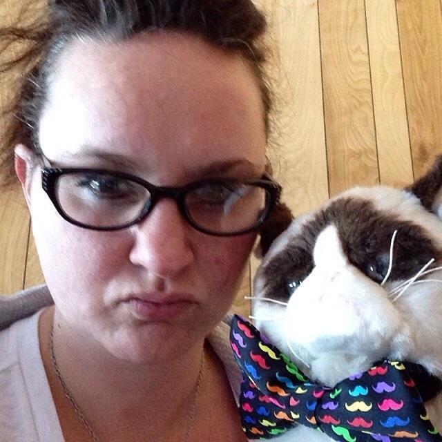 Okay, so Grumpy is actually the Overlord’s friend, a gift for her seventh birthday, which was minion themed. We’ve been calling her Grumpy Cat for a year because she glared in our Easter photos last year & someone said that’s what she looked like. She even placed third in a Grumpy Cat lookalike contest (she was robbed). But I like to think Grumpy enjoys my company too, probably not. He’s Grumpy for a reason.